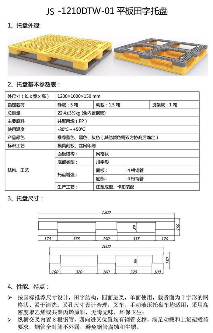2、塑料托盤產(chǎn)品尺寸誤差正負(fù)2%,重量誤差正負(fù)3%,均屬于企業(yè)標(biāo)準(zhǔn)允許的范圍。