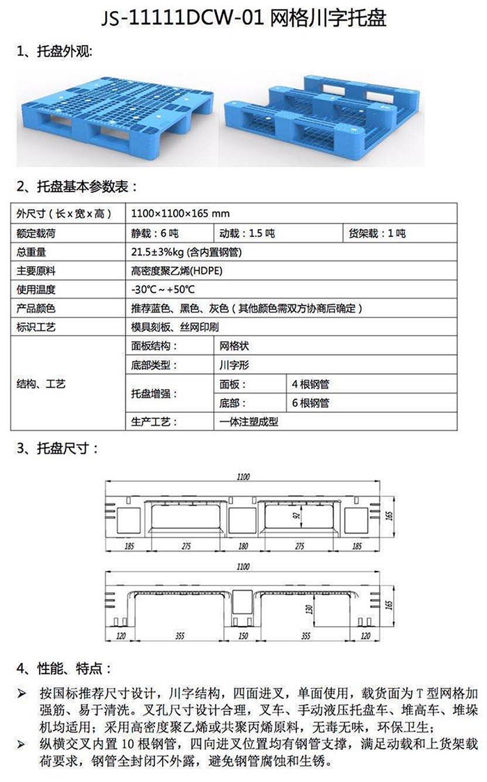 2、塑料托盤產(chǎn)品尺寸誤差正負2%,重量誤差正負3%,均屬于企業(yè)標準允許的范圍。